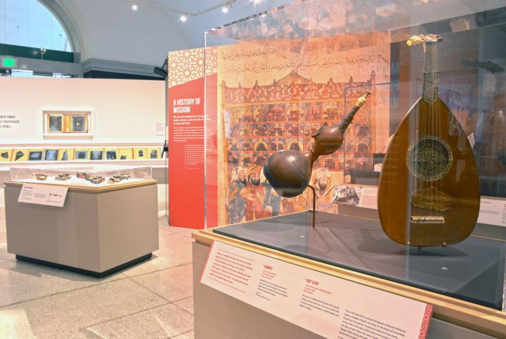 Another important, more fundamental intervention was a small kiosk of audio recordings, tucked away in a “House of Wisdom” wall panel, which invited you to listen to Syrian and Iraqi songs and poetry, as well as the call to prayer of the now severely-damaged Umayyad Mosque in Damascus. Two selections gave a glimpse of modern Syrians’ and Iraqis’ emotional and cultural connections to each other: Syrian Nizar Qabbani’s poem to his Iraqi wife, Bilqis, and Iraqi poet Muzaffar al-Nawwab’s “A Poem to Damascus.” It was a shame that this kiosk was so easily overlooked, as it is the more intangible cultural artifacts, like poetry, that give a stronger sense of modern Syrians and Iraqis as real living, breathing people rather than mere artifacts themselves. At least their humanity is preserved in these selected verses by Amineh Abou Kerech, a Syrian refugee who won the British Betjeman poetry prize as a 13-year-old in 2017: