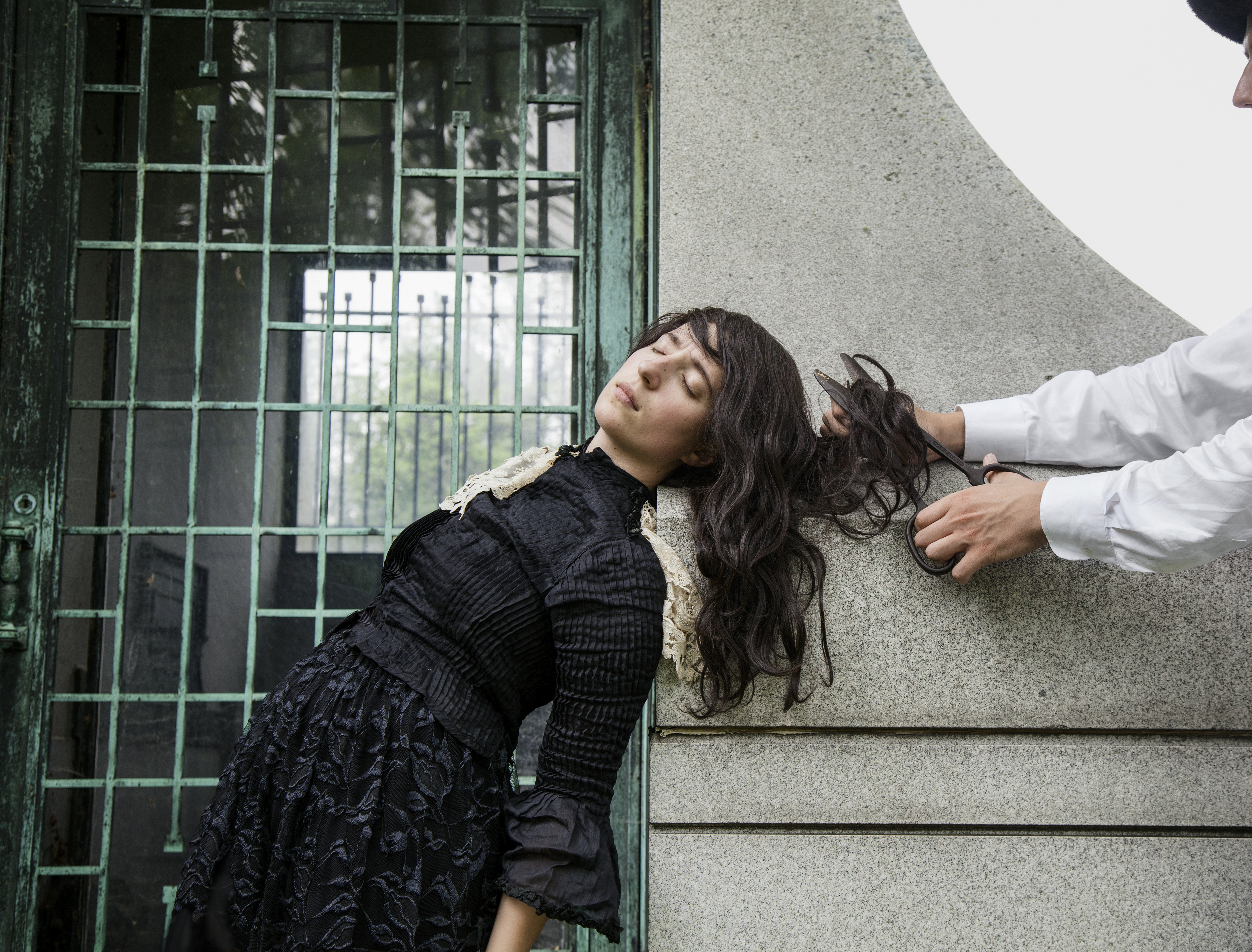 The best part of making work is having it resonate with people, and I love that you picked up on the intersection of losing something at the same time as purity, or kashrus is gained. Hair is a really important theme for me and also has a lot of significance in Jewish life and Jewish history: women cover their hair, boys cut their hair at the age of three, the Nazir can’t cut his hair and Shimshon loses his power when his hair is cut. A lot of different themes came together for me when I was conceptualizing this image. I was, in the first place, thinking about the roles of men and women in traditional Jewish life. We know of course that men have always created Halacha, or Jewish law, and this affects women’s lives and bodies in extraordinarily intimate ways. But I also know and have known so many women who feel purified, or “kosher” through these laws, and I wanted to think about female agency in interactions where men are making decisions about the female body. The meeting point of violence and redemption is so crucial for me. I think that hair is a really personal thing, and that even just a small change in someone’s hair style or hair length can change the way a person feels or is perceived and gendered.