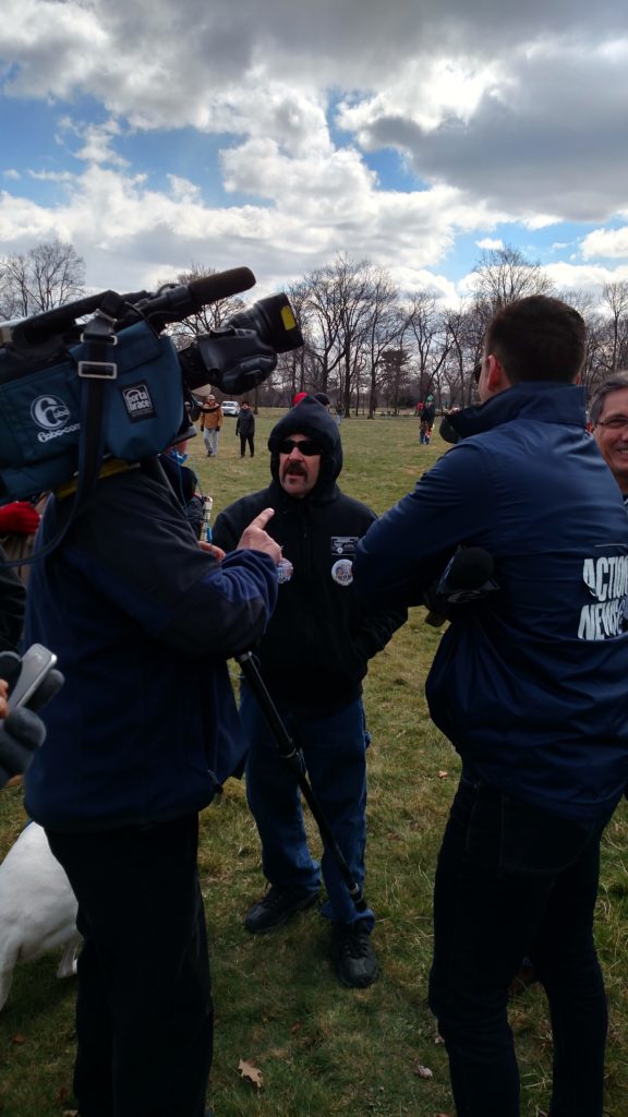 Disjunctions like these keep piling up. Worthington’s followed by the emcee, a woman who was a former contestant on the Apprentice (“I was on a little show … maybe you’ve heard of it …”) who receives tepid recognition when she compliments everyone on their civic engagement and eagerness to contribute to a new phase of the “movement.” Then another speaker gets up and promptly launches into a tirade that I find hard to follow, but that the audience loves. He starts by bringing up recent controversy over the nomination of Jeff Sessions as attorney general, which he paints as a “fake news” misdirection. “The moment Trump announced Sessions,” he says, “They [the Democrats] went after him. What are they trying to hide?” Someone in the crowd yells “Pizzagate!” but he keeps going – the real story is how Hillary “sold uranium to the Russians.” Next he’s on to condemning Philadelphia Democrats and sympathizing with the “good people who moved out” following various outrages. He mentions “that time the Democratic Mayor blew up a whole block in West Philly,” alluding to the MOVE bombing, and then in the next breath accuses city Democrats of “being soft on ISIS,” and introducing an unacceptable soda tax. The crowd loves all of this – some yell “Lock her up!” and others start to chant “Trump! Trump! Trump!” in rapid cadence. Everyone has gotten the memo about being “positive and uplifting” but their actual enthusiasm seems to lie elsewhere.