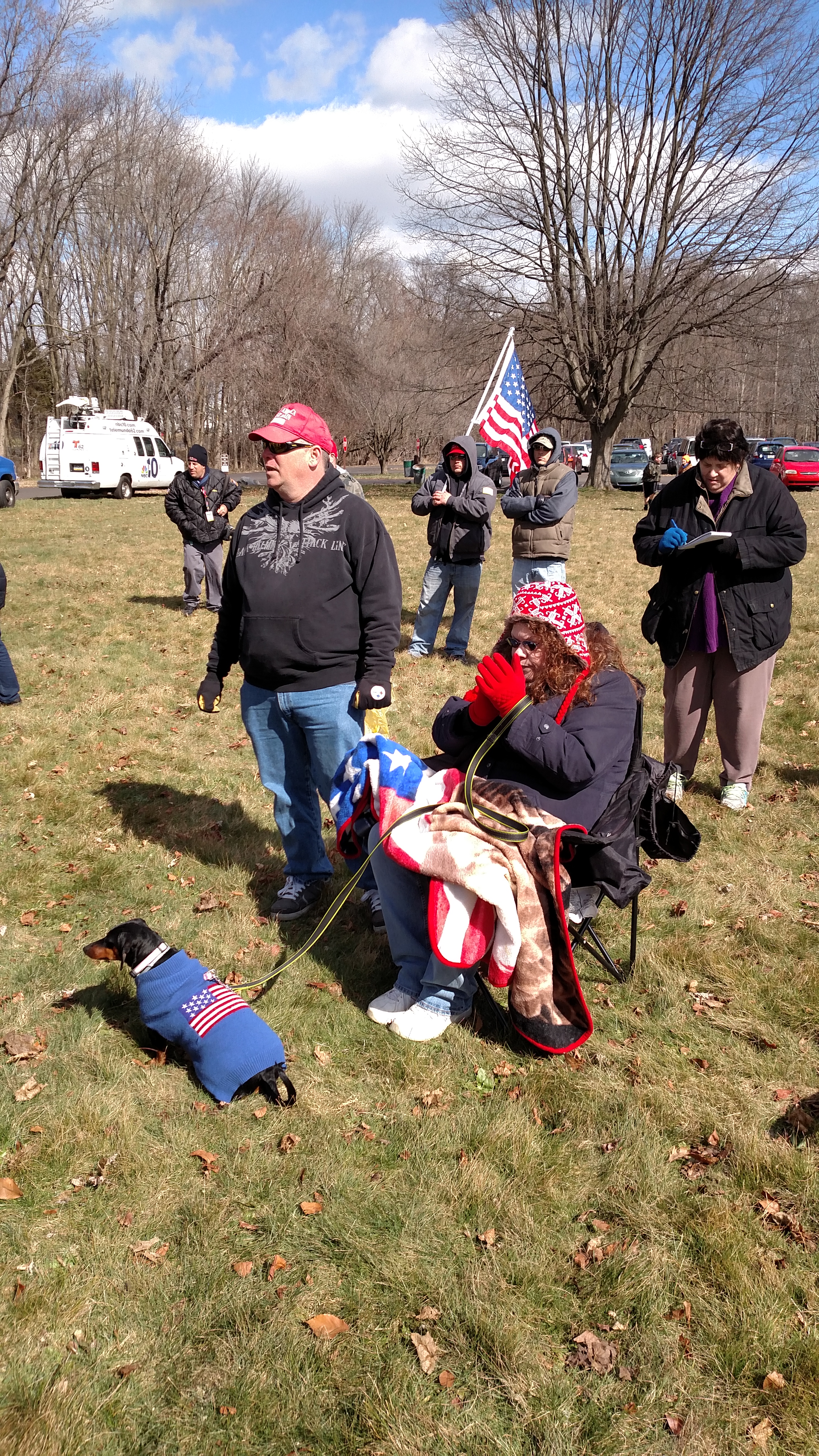 It’s early March, Trump’s been in office for only a little more than a month, and here in Southeastern Pennsylvania, supporters have gathered to rally in support of a sitting President. The event website promised a “sign waving rally [that] will be peaceful, positive, patriotic, uplifting, and open to anyone that supports an America First agenda.” At least as far as the signage goes, the participants have delivered, bringing hundreds of flags and hand-painted cardboard signs and banners.