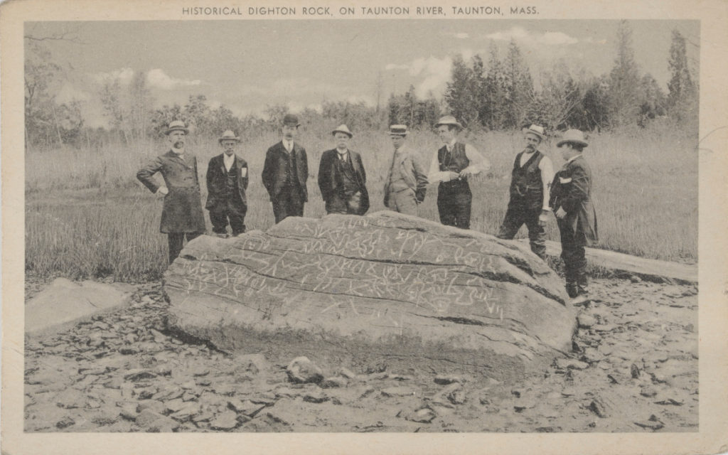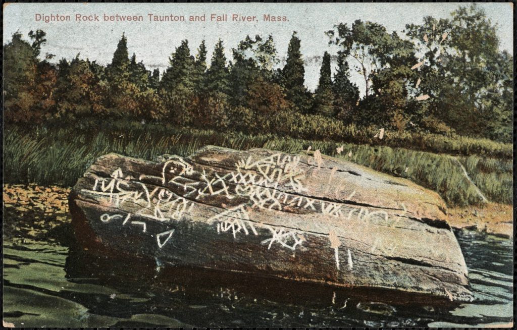 That old Puritan divine, Cotton Mather, having an interest in ancient things pulled from the ground (he once hypothesized that a mammoth tusk was evidence of antediluvian Nephilim), also commented on the rock. He wrote that among “the other Curiosities of New-England… is that of a mighty Rock” upon which there are “very deeply Engraved…. strange Characters: which would suggest as odd Thoughts about them that were here before us, as there are odd Shapes in that Elaborate Monument.” Mather, who did not let never having seen the Dighton Rock stop him from theorizing about it, was simply one of many to confront this enigma.