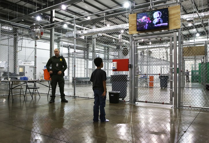 A boy from Honduras watches a movie at a detention facility run by the U.S. Border Patrol on Sept. 8, 2014 in McAllen, Texas. The Border Patrol opened the holding center to temporarily house the children after tens of thousands of families and unaccompanied minors from Central America crossed the border into the United States during the spring and summer of 2014. (Photo: John Moore—Getty Images)
