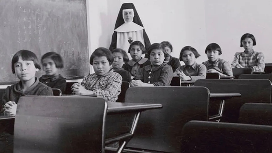 (A Canadian residential school. Photo taken in 1940. Image source: Library and Archives Canada)