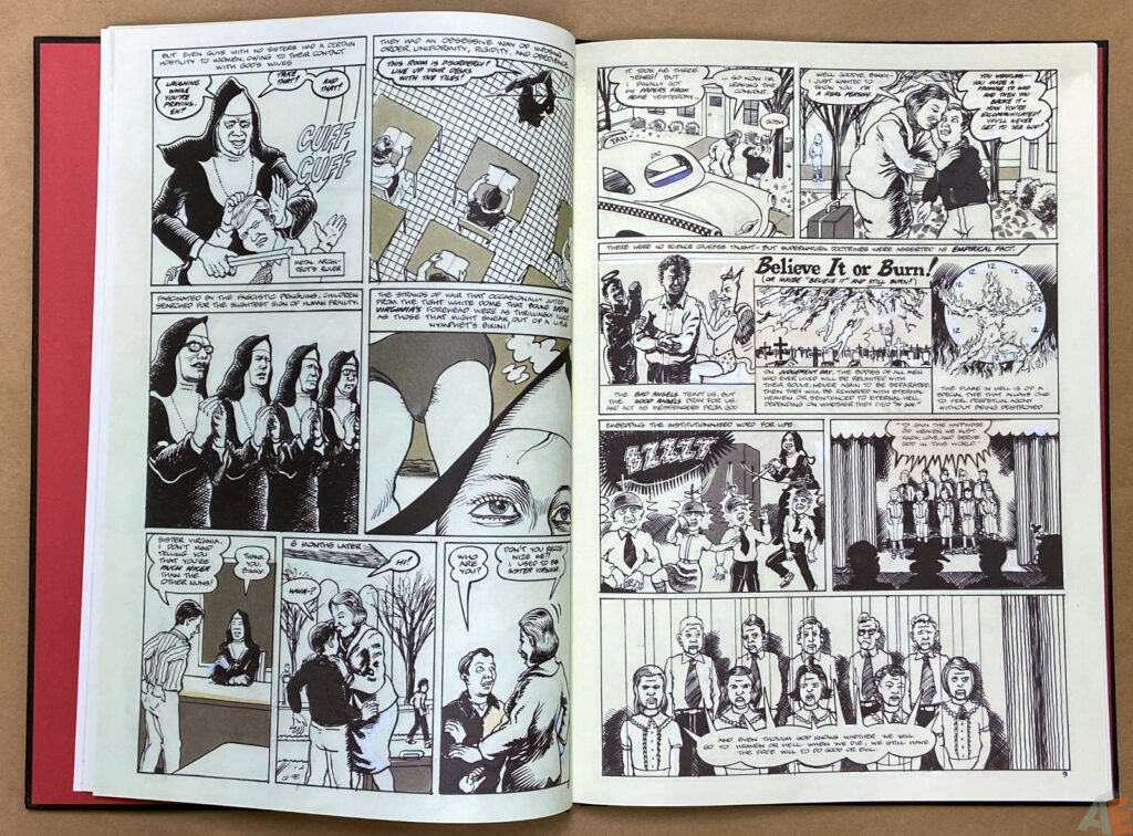 Green was far from the first or last to confront religion in comic form, even among the undergrounds. Two of the earliest underground comics from 1964 were religious parodies, God Nose by Jack “Jaxon” Jackson and The Adventures of Jesus by Foolbert Sturgeon. In 1973, the year after Binky Brown’s publication, Robert Crumb and others put out the famous (and filthy) anthology Tales from the Leather Nun. Focused on mocking religion as another method of social control, these texts may have had personal roots but were ultimately uninterested in personal spiritual or psychological reflection. This self-analytic impulse, according to Art Spiegelman, creator of the Holocaust memoir comic Maus, was Green’s greatest innovation and where his influence on the medium can be felt most clearly to this day.