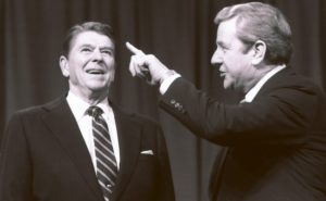 The Rise and Fall of the Religious Left: Politics, Television, and Popular Culture in the 1970s and Beyond explores the media career and activism of American television icon Norman Lear as an expression of “the Religious Left.” Lear created such famous shows as All in the Family, Sanford and Son, Good Times, and The Jeffersons. Through one-on-one interviews and archival research, the book illustrates how Lear has been the paradigmatic expression of the Religious Left in the recent past. Lear’s All in the Family wasn’t simply entertainment; it was television with a political purpose. The following excerpt foregrounds a pointed exchange between President Ronald Reagan and Lear in the pages of Harper’s magazine. Their religious and political differences came down to two prepositions: freedom of versus freedom from religion. These mutually exclusive terms continue to shape much of our political discourse today.